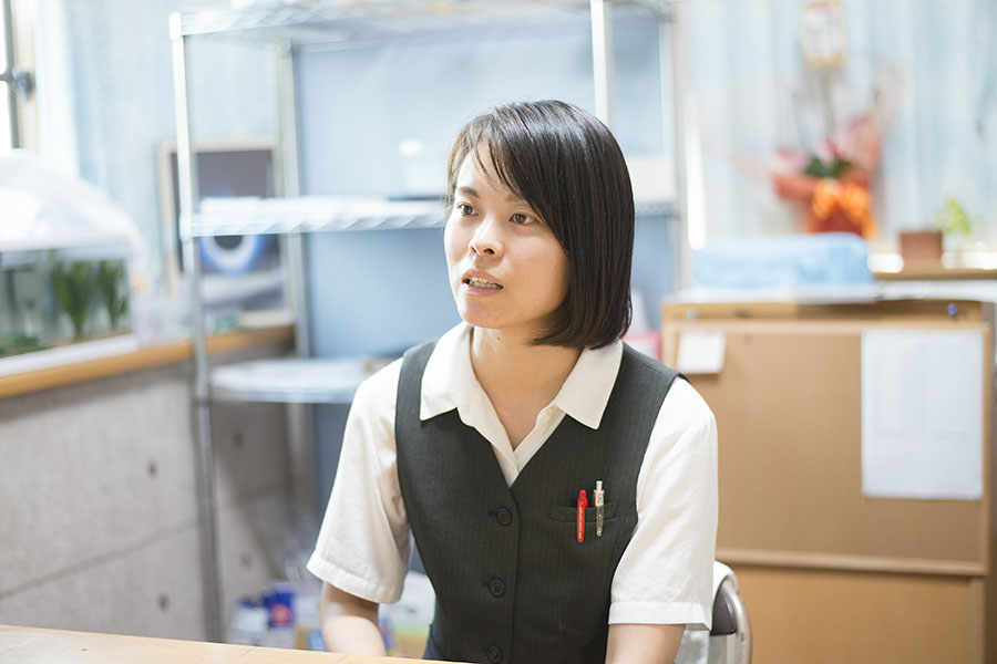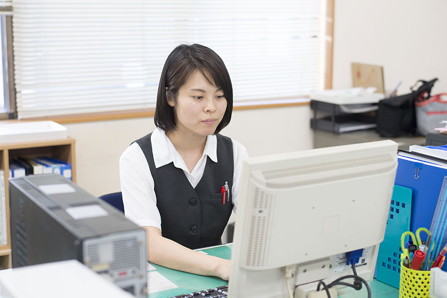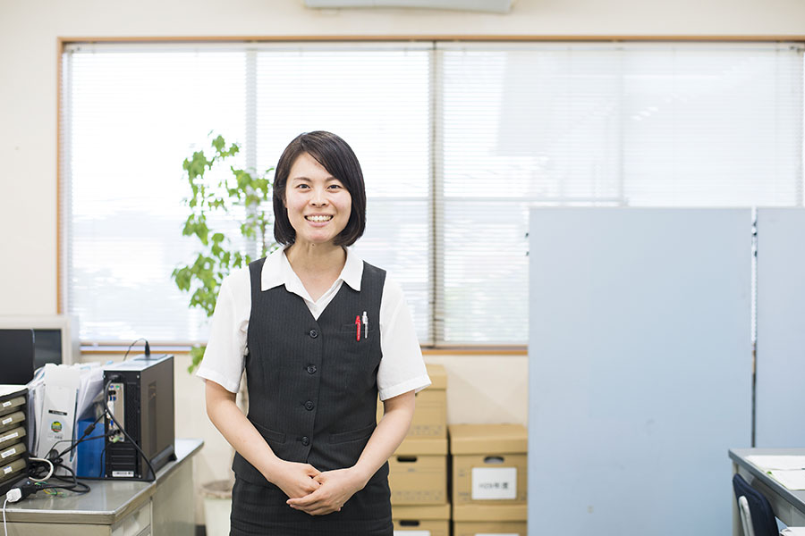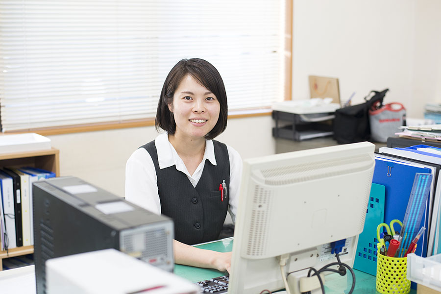 経理・事務など、総務全般を行っています。以前、働いていた販売、接客の職場と比べて、土・日・祝日の休み、勤務時間も定まっているので、自分の時間を有効的に使うことができます。ただ事務系の経験がなく、以前の販売職とは全く畑違いの仕事だったため、覚えることも多く、慣れるまではいろいろ苦労もしました。それを乗り越えられたのは社長や奥さんをはじめ、社員の方がとても親切で、接しやすく、どんなことも相談できる環境だったからと感謝しています。まったくストレスもなく、楽しく働いています。
