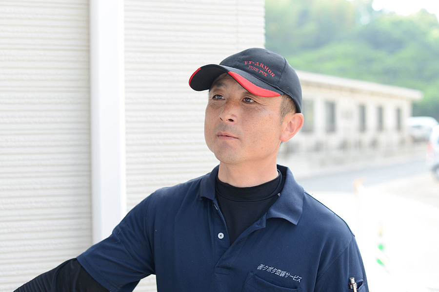 取り付け工事を担当しています。仕事でこだわっているのは、仕上がりの品質と機能的な部分です。エアコンは長期間使う商品です。たとえ機械は入れ変えるとしても、私たちが工事する配管は何十年も使いますので、トラブルが起きないように、正しく、美しい仕上がりにこだわります。
